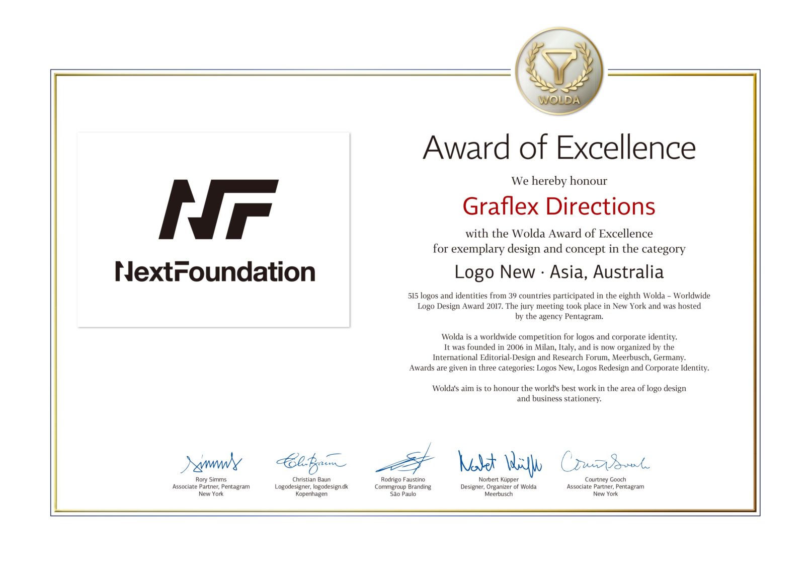 AWARD: 8th WOLDA / Award of Excellence